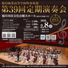 『第39回 旭川商業高等学校吹奏楽部 定期演奏会』が開催されます。 本年、旭川商業高等学校 吹奏楽部は創部100周年という大きな節目迎えます。 これま…