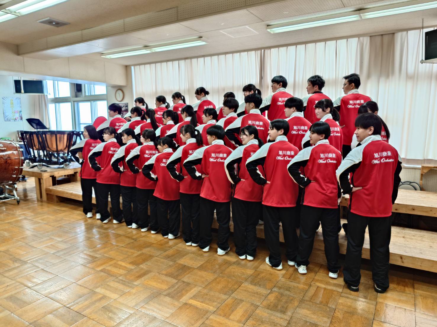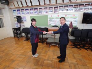 また、来年度に創部100周年を迎える旭商吹奏楽部へ、OB・OG会の記念事業の一である(仮称)第2ユニフォームが完成し、あわせて贈呈式を行いました。